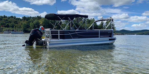 A 2021 23ft Princecraf Pontoon, can hold up to 8 guests.